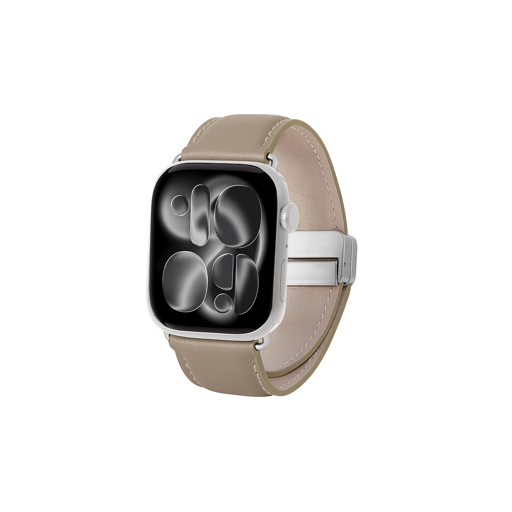 Apple Watch Armband - Skjutspänne (46 mm) Ljus Taupe  - Slätt kalvskinn