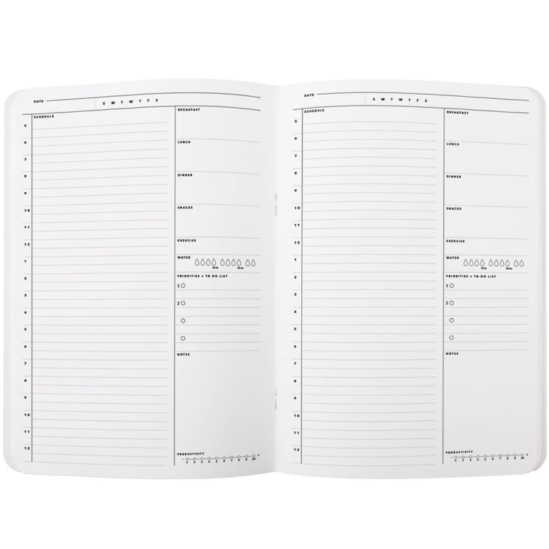 Denna A5-dagbok erbjuder generöst utrymme för att du enkelt ska kunna navigera genom dina dagar. Mellan sidorna finns utrymme för att notera viktiga händelser, från måltider till hälsoaktiviteter, samtidigt som du behåller överblicken över dina prioriteringar. Denna påfyllning, som är utformad för att komplettera din Alpine-planerare perfekt, finns att beställa endast på engelska och utmärker sig genom sin subtila balans mellan enkelhet och elegans. Dessutom, precis som vår anteckningsbok och planerare, kan du välja en andra påfyllning av samma storlek, i vilket format som helst. Denna levereras tillsammans med din första för extra bekvämlighet.