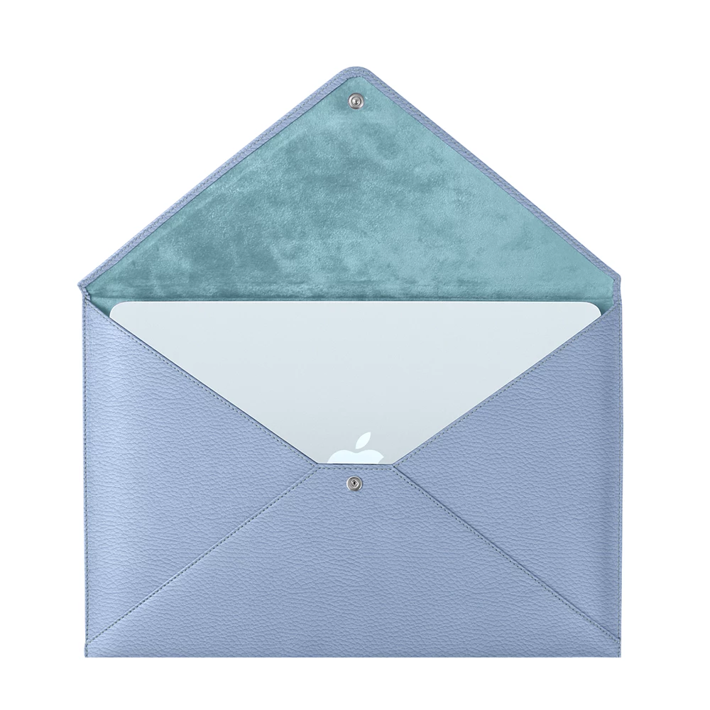 Utformat för att följa din vardag rör sig detta läderfodral för MacBook Air 13 tum naturligt med dig. Det skyddar din enhet utan att kännas skrymmande. Den triangelformade klaffen med tryckknapp håller datorn på plats, medan mikrofiberfodret skyddar mot vardagliga märken. I väskan, under armen eller på skrivbordet anpassar det sig enkelt. Den slimmade designen ger plats för din MacBook Air och några A4-dokument. Välj läder, färg och lägg till dina initialer för ett fodral som är helt ditt.