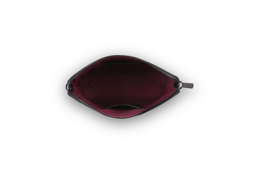 Speciell Limited Edition för Lucrins 25-årsjubileum i äkta svart kalvläder och granatrött bomullsfoder. Originell läderskapelse numrerad 1 till 25 med en exklusiv logo för att fira varumärkets 25 år.