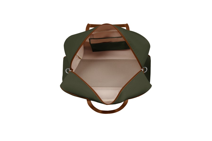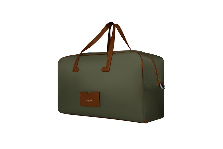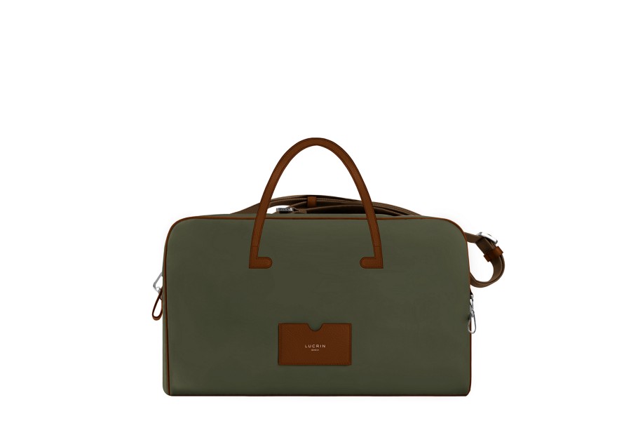 Leather & Nylon Travel Bag - Tan-Khaki - High end nylon