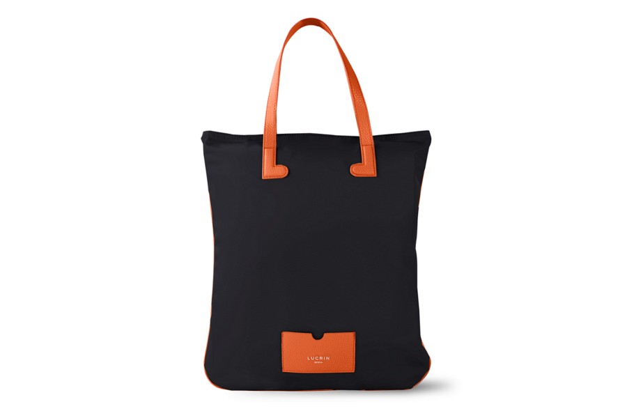 Nylon Leather Tote Bag - Orange-Black - High end nylon