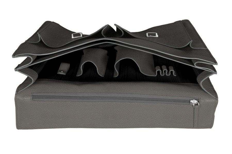 Satchel Briefcase - Mouse-Grey - Granulated Leather