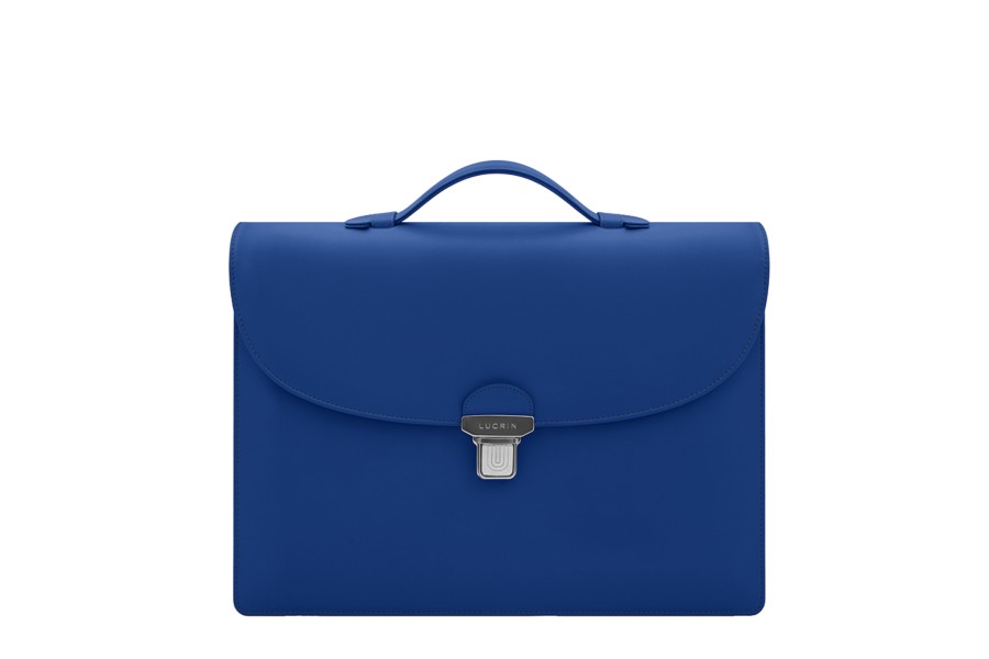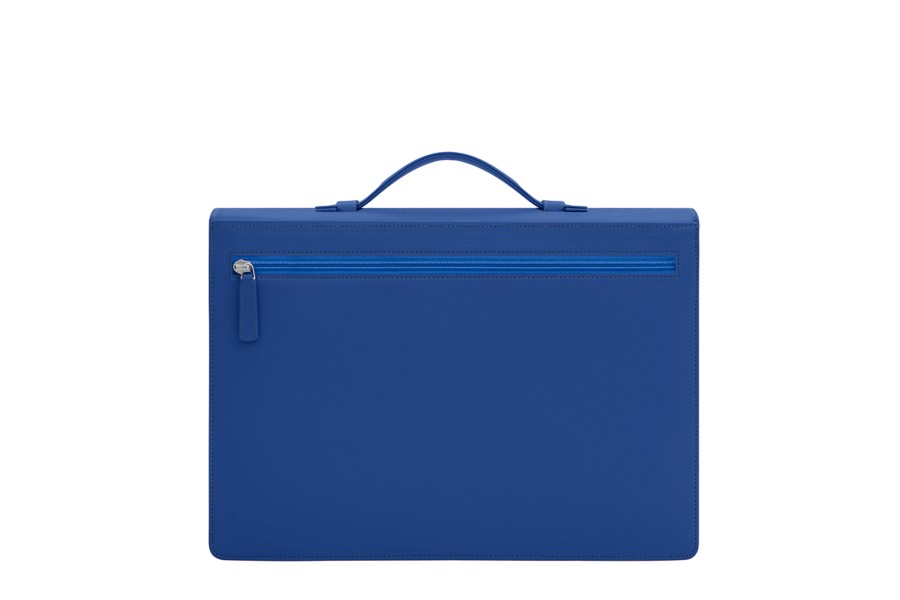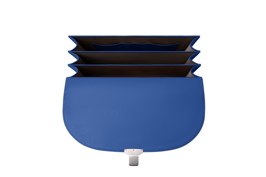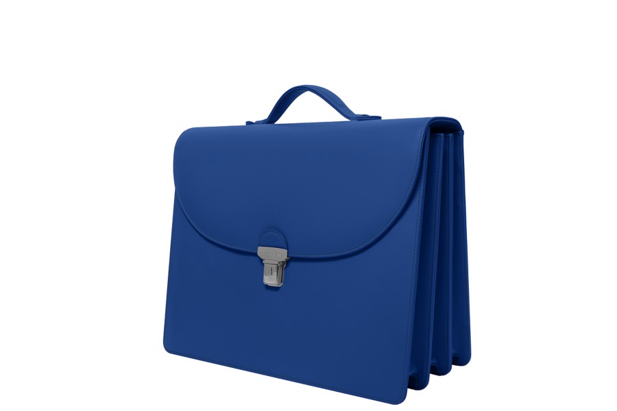 Portfölj med 3 fack - Kungsblå - Slätt läder
